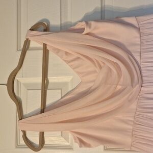 David's Bridal long formal chiffon bridesmaid gown. Chiffon drape in back. Sleeveless. Size 20. Worn once. Petal Pink color Could be worn for Prom or a formal event.