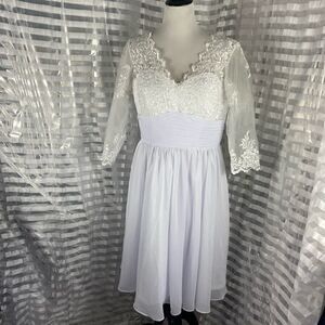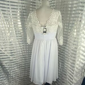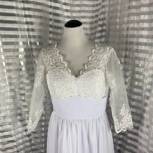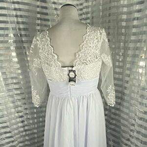 Sheer lace sleeves built in bra embroidered lace top sheer chiffon bottom with silk lining zip up back v neck formal dress