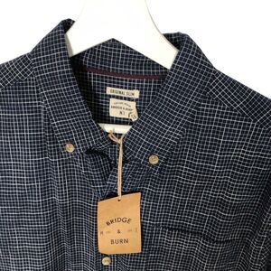 Bridge & Burn Men's Sutton Slim Fit Long Sleeve Shirt Navy Grid Mens Medium NWT