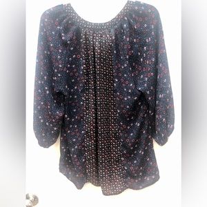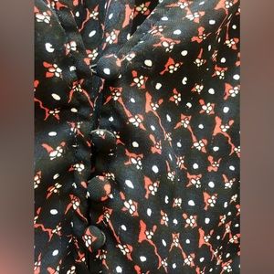Fun dark blue with red top. Buttons a little and is comfortable cute