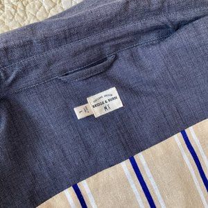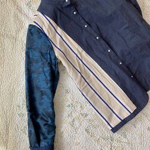 Bridge and Burn Chore Coat. Size L, Slate Blue. Lined chore coat. Easily dressed up or down. Fun silky, camo sleeve lining.