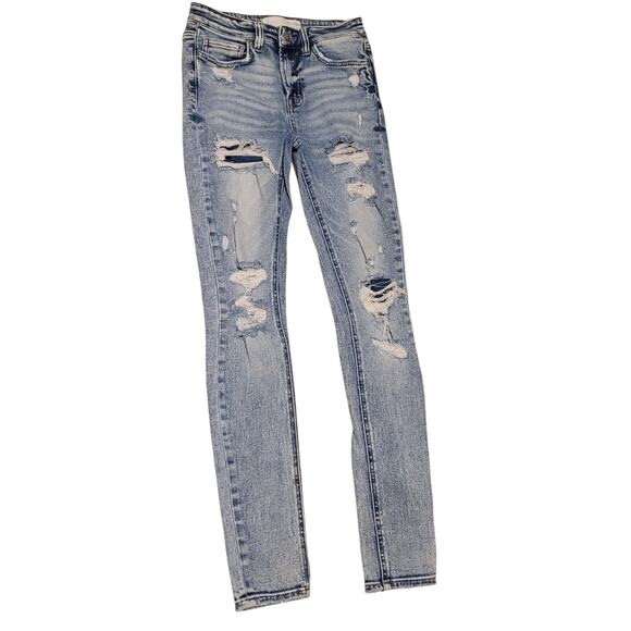 Bridge by Gly Buckle Womens Distressed Mid-Rise Skinny Jeans Size 26L EUC