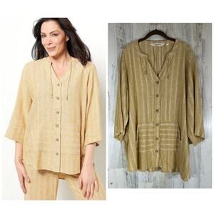BridgeHampton Isaac Mizrahi Button Up Tunic Size 2X Marigold Stripe Linen Blend