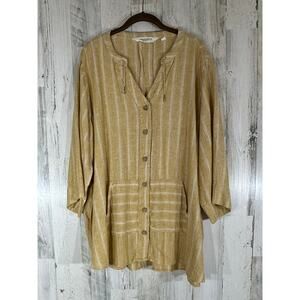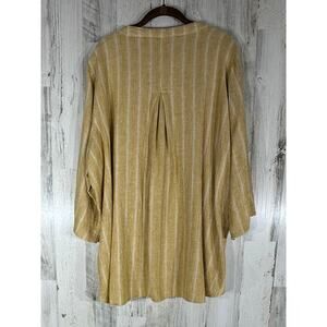 Item: BridgeHampton Isaac Mizrahi Button Up Tunic Size 2X Marigold Stripe Linen Blend