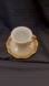 Elegant vintage teacup and saucer with floral design. Features gold and cream colors and apple and peach blossom designs. Chocolate, espresso demitasse style. Gilded and rosettes adorn the handles. Antique and likely from the early 1900’s. Porcelain Bone China. Measures 2.5 inches across, 3 inches tall and the saucer is 5 inches across. No chips or cracks. Great for tea parties or lovely home decor.