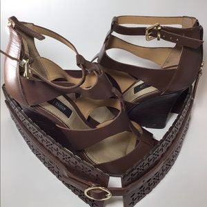 Open toe gladiator style wedge. It’s almost 3 different shoes in one. WHBM definitely brought something new to their collection with this one. Have some fun with her😜 Belt sold separately.