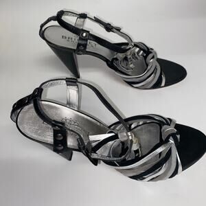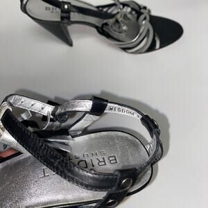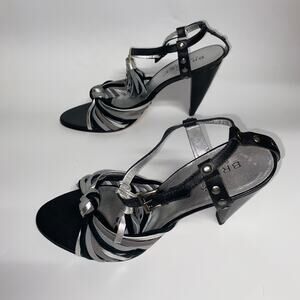 Bridget Shuster Black Silver Gray Leather Tassel Ankle Strap Heeled Sandals 7.5