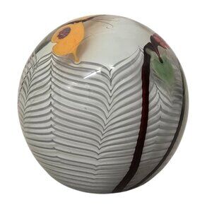 This meticulously crafted glass paperweight features a vibrant butterfly and floral design. It's a unique decorative piece that adds a touch of elegance to any space. The intricate details and quality craftsmanship make it both a functional and beautiful addition to your desk or display area.