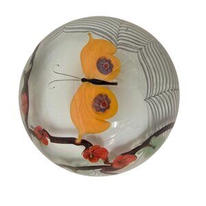 Handcrafted Glass Paperweight With Butterfly & Floral Design