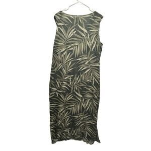 Elegant and breezy, this Bridgetown Collection maxi dress is crafted from 100% silk (shell & lining) with a tropical palm leaf print in earthy green and beige tones. Features a sleeveless design, scoop neckline, side slits, and a lightweight, flowy silhouette perfect for warm weather or resort wear. New with tags.