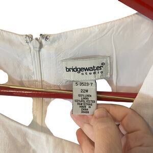 Bridgewater Studio Plus Size 22W White Linen Sleeveless Dress Lined Back Zip
