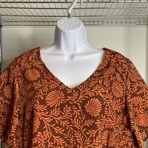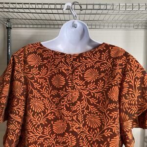 Bridgewater Women's Orange Floral Ruffle Sleeve Dress Size 18W Lagenlook Retro