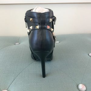 Gold Stud And Buckles, Side Zipper Closure, Slits On Outside of Shoe, Heel Height: Approx 4", Shaft Height: Approx 3 1/2"