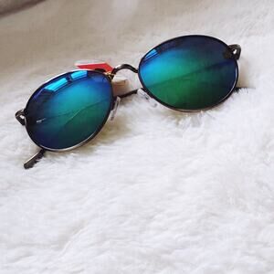 These glasses comes with a fabric pouch and eyeglasses cloth wipe. Some reflections may be pictured due to the mirrored lenses - they are not flaws to the product. The sunglasses provides UV400 protection.