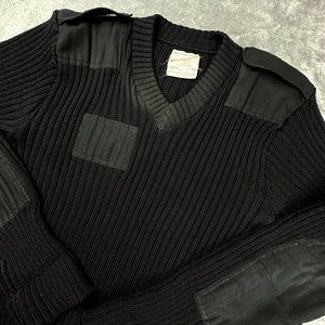 • Brigade Quartermasters Sweater Men 40 Black V Neck Wool Woolly Pully England Vtg