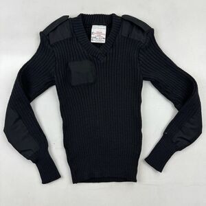 This sweater from Brigade Quartermasters is a versatile and stylish addition to any wardrobe. It is made in England from pure wool and features a tight-knit solid pattern. The V-neckline and elbow patches add character to the sweater, making it suitable for various occasions such as travel, parties, casual wear, and even business attire. The long sleeves and stretch feature make it a practical choice for walking, hunting, and hiking, while the winter, summer, fall, and spring seasons make it suitable for year-round wear. The sweater is dry clean only and is available in size 32/34. Add this vintage piece to your wardrobe and stay warm and stylish in any season.
