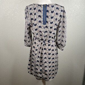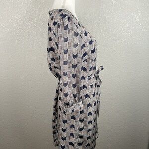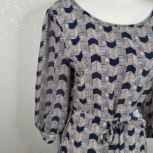 Brigette Bailey Blue & Red Chevron Print Front Tie 3/4 Sleeve Career Dress Sz L