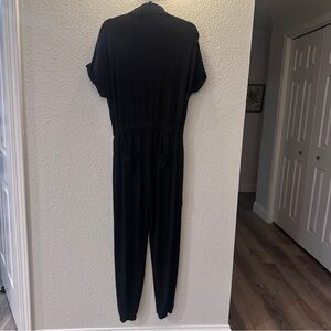 Brigette Brianna Medium Black Wrinkle-Free Jumpsuit Button-Down Elastic Waist Pockets