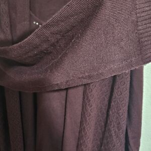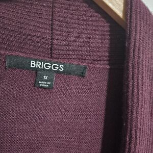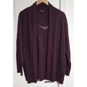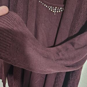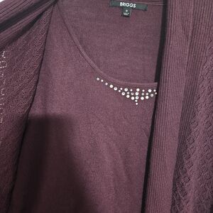 Briggs 1x Burgundy Cardigan Sweater With Buikt In Sweater Shirt With Rhinestones