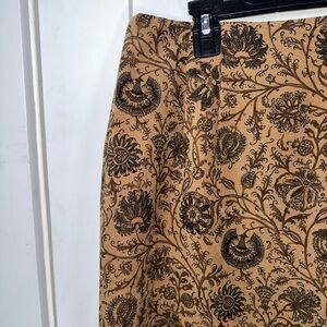 This elegant skirt features a beautiful floral design in tan and black, perfect for any occasion. Its sophisticated pattern adds a touch of class to your wardrobe.