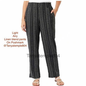 Features: Comfort stretch waistband Machine washable linen blend 2 front pockets Drawstring Made in China Content: 55% Linen | 45% Rayon Sizing: Sizes: S-XL Size Conversion: S= 4-6 | M= 8-10 | L= 12-14 | XL= 16-18 Inseam: 30” Relaxed fit Model is 5’9” and is wearing size small Color & size subject to availability Care Instructions: Machine wash cold Only non-chlorine bleach when needed Line dry Warm iron if needed Do not dry clean