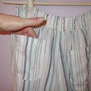 Briggs Linen Blend Pull On Shorts Size XL High Rise Elastic Waist Pocket Striped