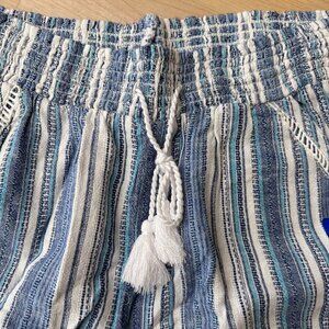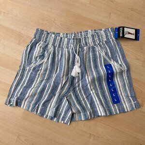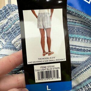 Briggs Linen Blend Pull On Striped Shorts Pockets White Blue Size Large
