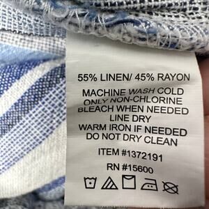 Stay cool and stylish in these Briggs Women’s Linen Blend Shorts, size Medium. Featuring a classic blue and white striped pattern, these breathable shorts offer a relaxed fit with a comfortable pull-on elastic waistband and side pockets.