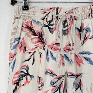 Briggs Linen Pants Womens Size Small Cream Floral Causal Pull On Tropical Travel Elastci Wasitband