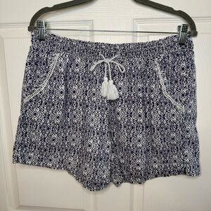 Briggs Navy and White Shorts Size Large Ikat Design Linen Blend GUC
