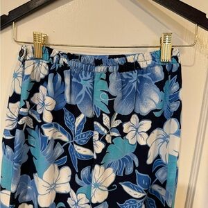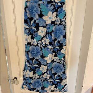 This stunning maxi skirt by Briggs New York features a vibrant floral pattern in shades of blue and white, creating a striking visual appeal. The pencil silhouette offers a sleek and sophisticated look, making it perfect for casual outings or resort wear. Lightweight and flowy, this skirt is designed to keep you comfortable while looking effortlessly stylish. Bin 4 item 38.