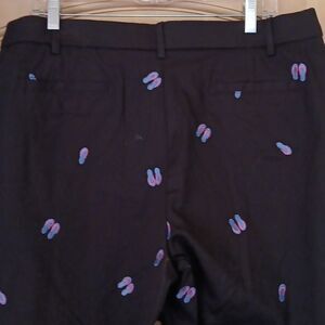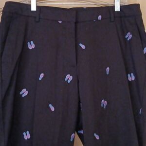 NWT Super cute cotton pants embroidered all over with flippy flops. A little stretch. Front zip. Size 16 measures 36 at waist, 46 at hips. 11.5 inch rise. 23 inch inseam. So fun!