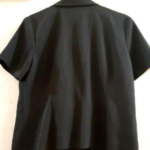 This is a solid black dressy blouse with some buttons and an attached collar. Pretty retro and from the 2000s. The v neck doesn't go down too low. Originally from Briggs size US S. Brand new quality and the material is soft and comfortable. Estimated original price.