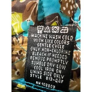Soft teal outer shell with brown, turquoise, and lime floral lining.