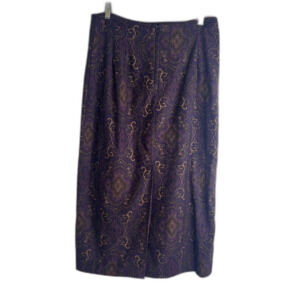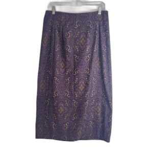 Briggs New York Velvety Straight Midi Skirt Purple Tapestry Brocade Size 14P VTG