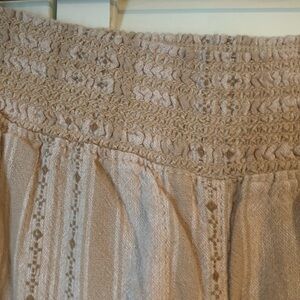 Elegant straight leg pants with subtle beige stripes. Ideal for versatile styling.