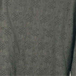 This is a pretty black eyelet single hook eye front closure Topper/Jacket with a satin trim.