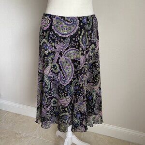 Briggs New York Womens Petite Small PS Paisley Lettuce Hem Elastic Waist Skirt. Pre-owned in good condition.