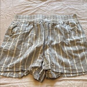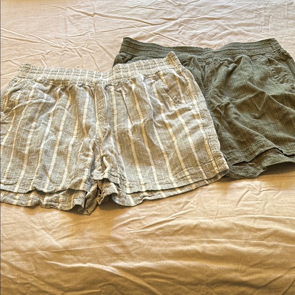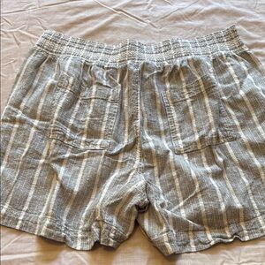 Comfortable women's shorts by Briggs New York. Features a striped cream design and solid olive color. Perfect for casual wear.