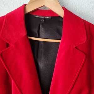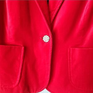 Briggs New York Red Blazer Velvet with Notched Lapel and Fitted Silhouette