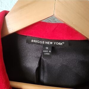 This vibrant red blazer from Briggs New York features a classic notched lapel and a tailored fit that enhances your silhouette. Crafted from a smooth fabric, it offers a structured shoulder design for a polished look. Ideal for adding a bold touch to your wardrobe.