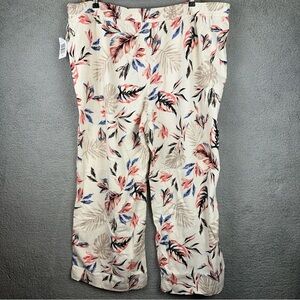 Briggs Pants Womens 3X Beige Multicolor Floral Pull On Linen Blend Wide Leg NWT
