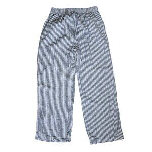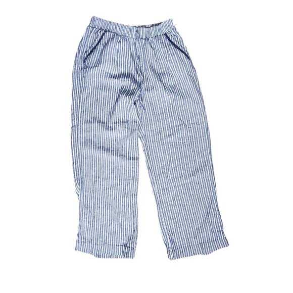Briggs Pants Womens Size L Large Blue Striped Linen Blend Pull On Pants Pockets