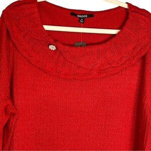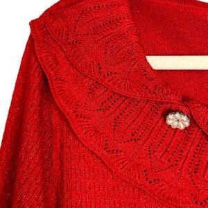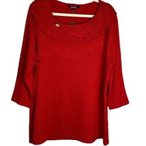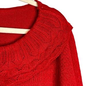 Briggs Red Metallic Ruffle Neck Jeweled Cableknit Sweater Holiday NWT 2X. Brand new with tag. Approximate measurements 28.5” shoulder to hem and 23” pit to pit. #BR4203XF17