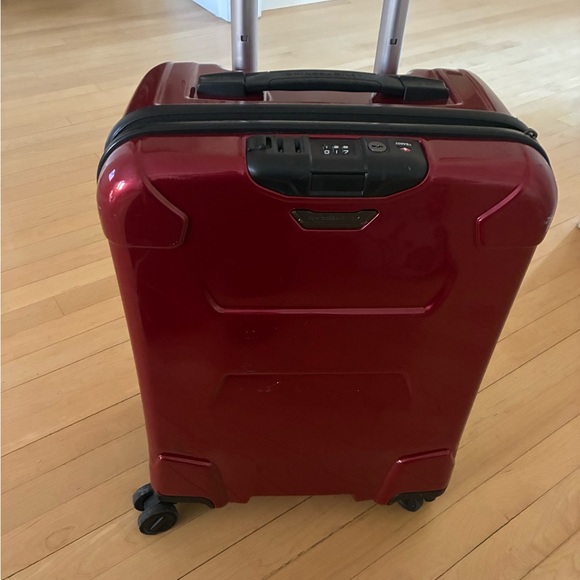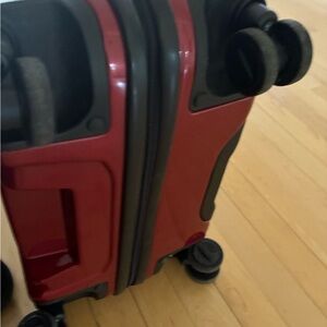 This bag is very beautiful- I used it only a few times. It has some light scratches. The color is just like a candy apple.