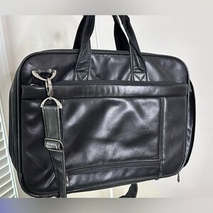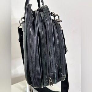 Sleek and stylish black leather men's bag, perfect for work or travel. Durable and spacious design. Computer briefcase shoulder bag