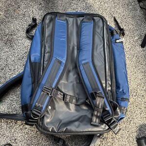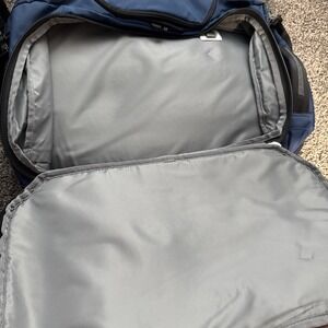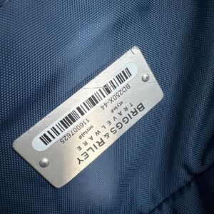 Stylish Briggs & Riley backpack. Features blue and gray design. Multiple compartments for organization. Durable and versatile.