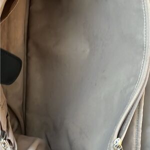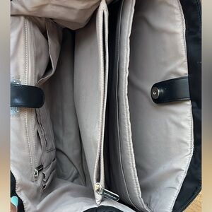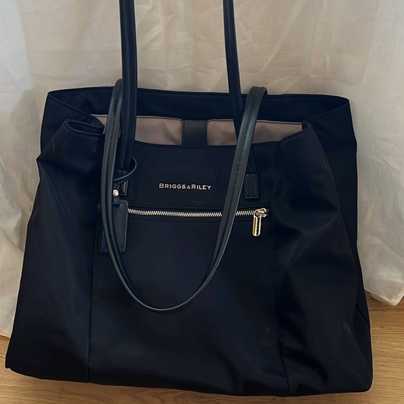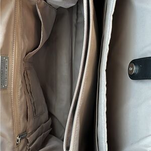 Great work bag and also worked well as a carryon bag as it has one interior padded laptop pocket and one interior zip RFID pocket. Also has the ability to to connect it to your luggage. I just don’t use it as much lately. Some spots inside see images.
