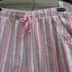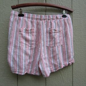 Briggs Short Women's L Linen Blend Pull On Drawstring Elastic Multi Stripe Pink