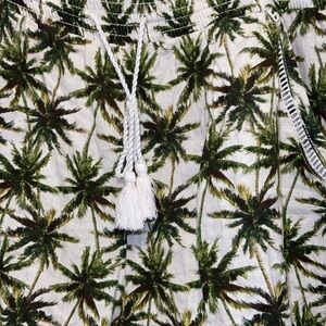 Palm tree, tropical, linen blend, pockets, tassel, tie, elastic waste, lightweight, summer, spring, vacation, resort, cruise, beach,